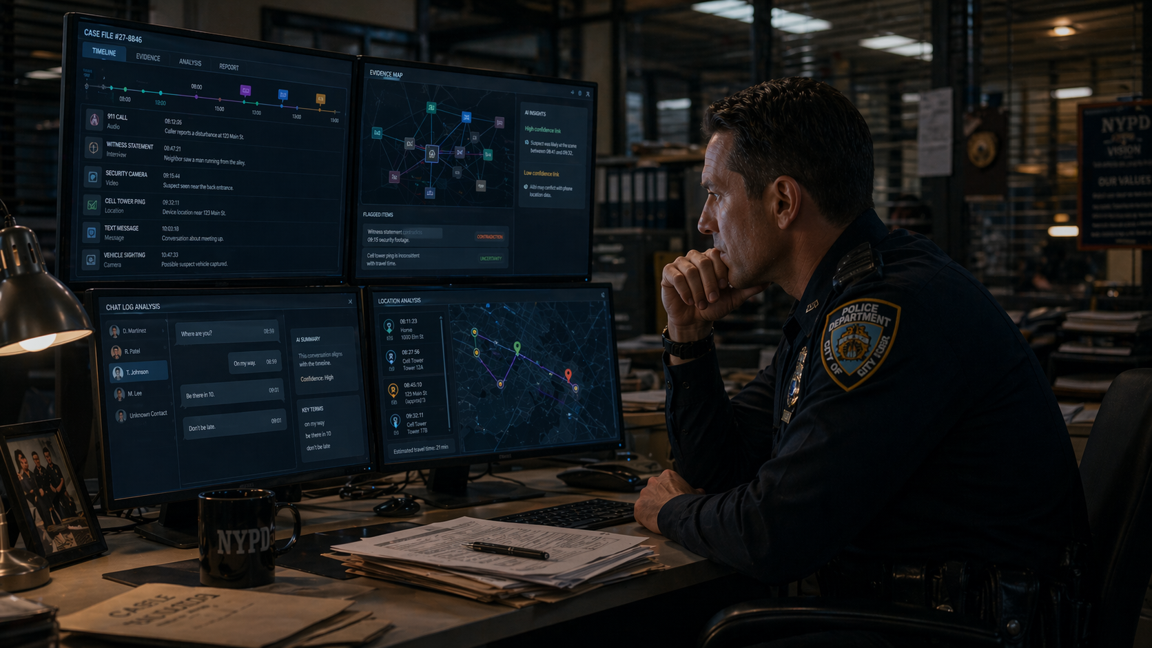 Even newer public safety AI rollouts from large vendors tend to emphasize analytics, voice controls, AI chat for chart generation, and automated reporting. That may improve workflow around the edges. It does not solve the harder problem of evidentiary reasoning across a messy case.